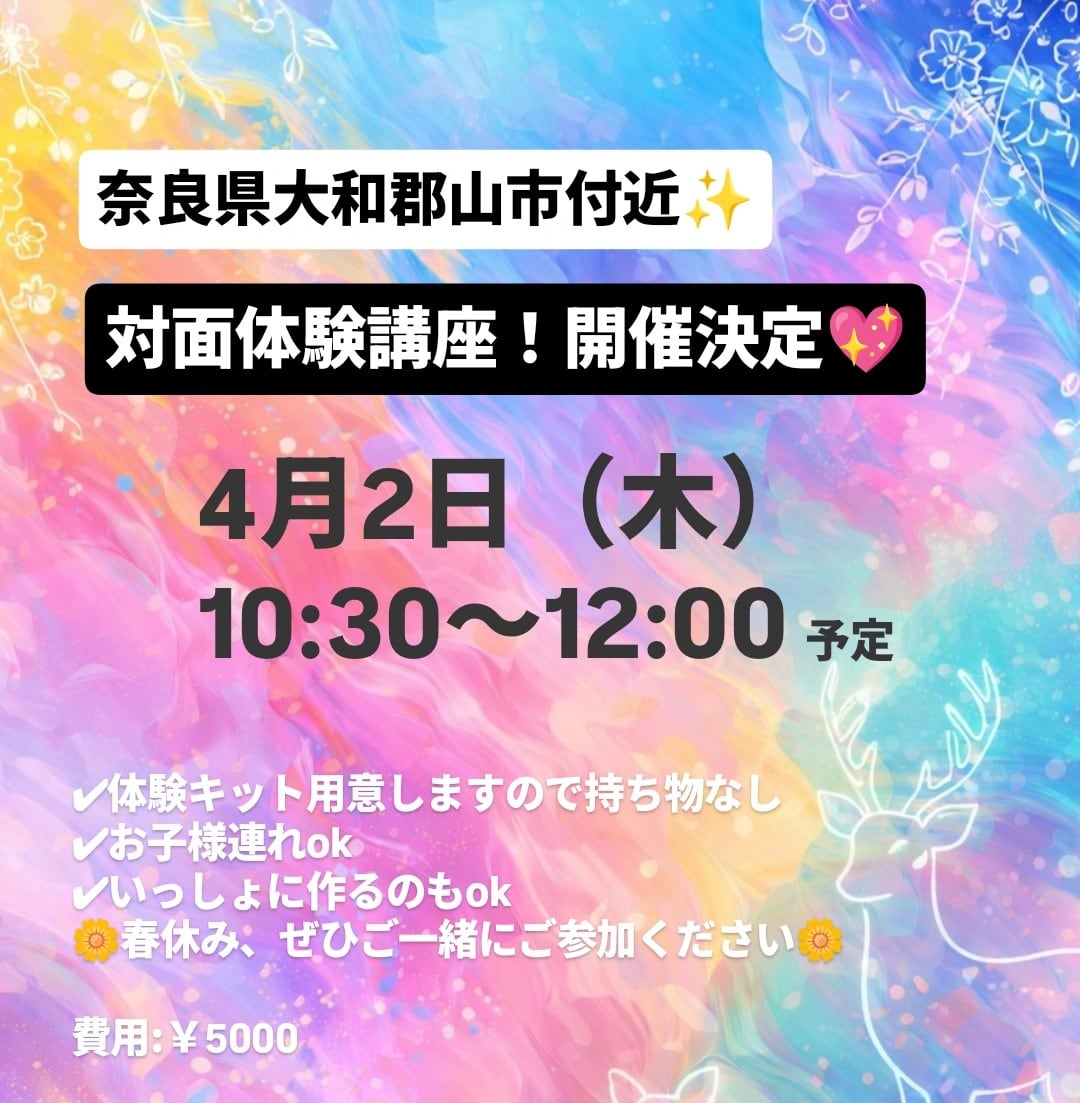 4月2日(木)10:30〜12:00 奈良県大和郡山市付近 対面体験講座のお申込みページです。